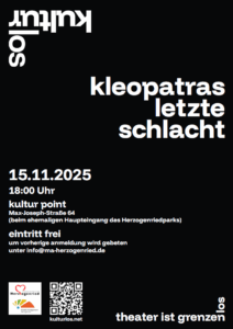 Die Theatergruppe „kulturlos“ gibt uns die Ehre, das Vier-Personenstück „Kleopatras letzte Schlacht“ im KulturPoint aufzuführen.